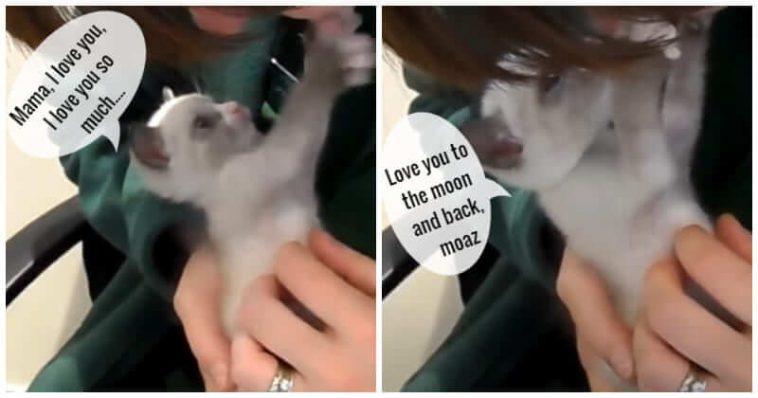 Luckily, everything changed when this kind woman noticed him and gave him a second chance at life. Without hesitation, she decided to adopt him and then took him home. The tiny kitten couldn’t be happier after being given food and water. He gave sweet hugs and kisses to his rescuer who now becomes his new mommy.