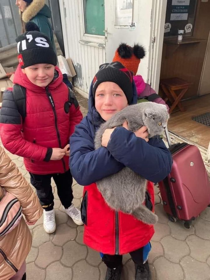 Twitter user @domdyer70 posted a heartwarming photo of a Ukrainian child, who has just arrived at the Polish border. We can see the child reunited with his cat, which he had lost shortly after crossing the border.