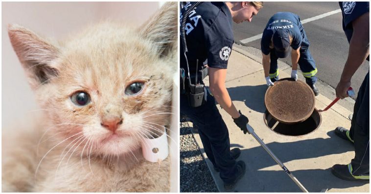Arriving on the scene, the firefighters discovered that a kitten had been trapped in the sewer for days, and immediately began a rescue operation.