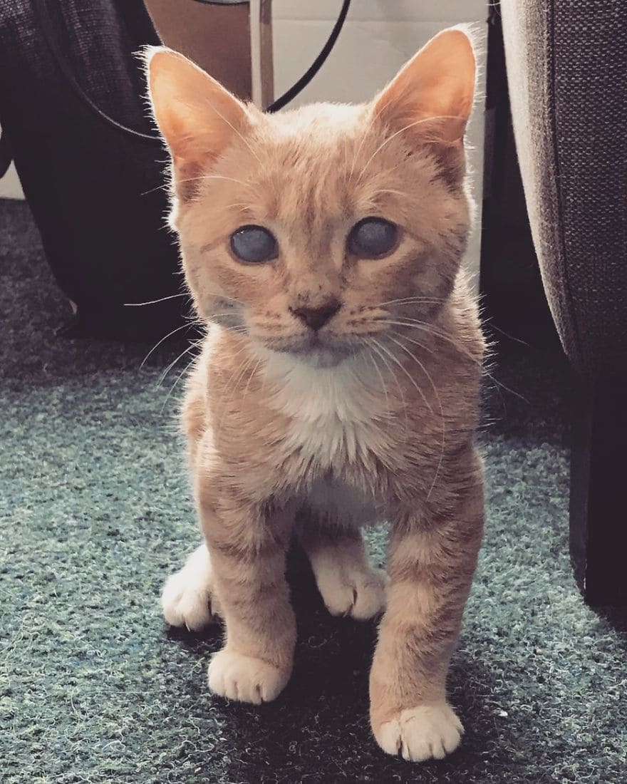 Munchie was found as an abandoned cat last September. After that, he was taken into a veterinary clinic in Wolverhampton where he met his new owner Emily Tomlinson. It was suspected that he was left by his previous owners due to having unusually cloudy eyes, although this condition does not affect his vision and his everyday life.