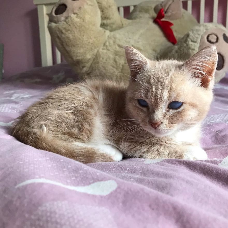 “I feel very lucky to have Munchie, he’s got the cheekiest little character and loves having lots of attention and cuddles,” Emily said. “He loves to play with his kitten toys.”
