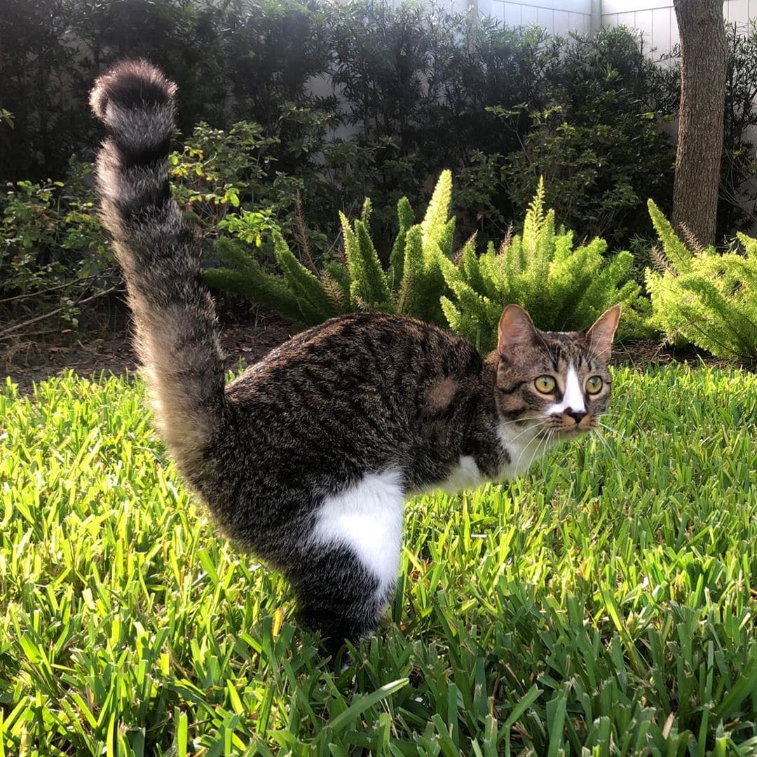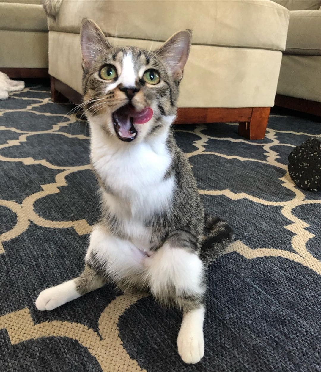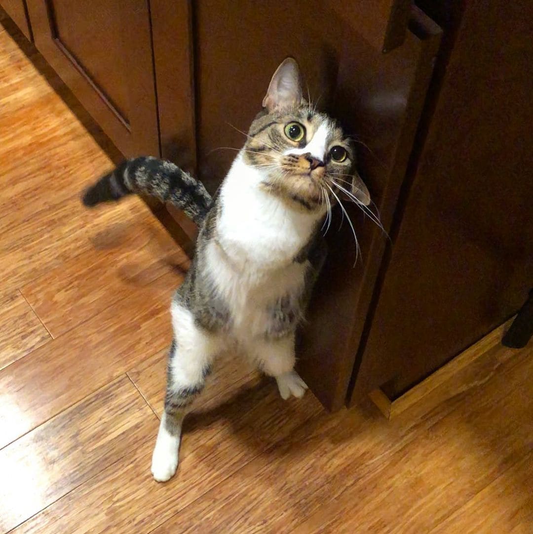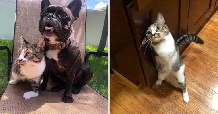 Duck is a pretty special cat! When her dad adopted her, she was just a little kitten who lost her front legs. For this reason, she had to learn to walk on two back legs. And of course, this was not easy for a kitten.