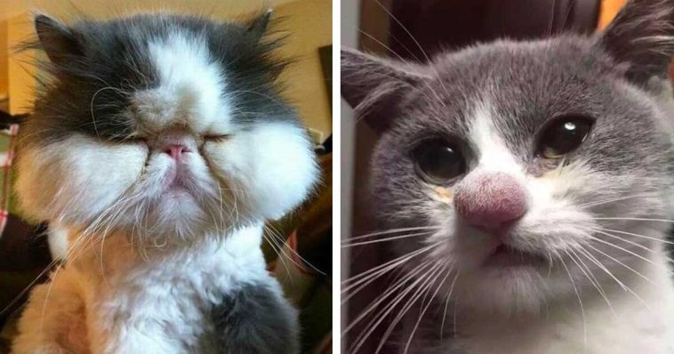 1. This kitty tried to eat some bees and now it’s already mushy face is even mushier.
