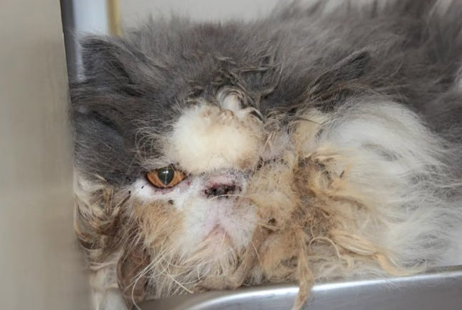 Gobo and many of the other cats and dogs needed immediate medical attention. They were kept at a site in small cages, and were filthy beyond recognition. With not enough food or water for all, many of them were malnourished and aggressive. None of the animals were spayed or neutered and were covered in horrible sores and matted. Gobo was one of these unfortunate cats.