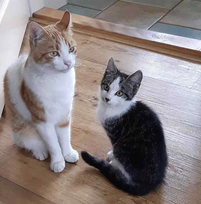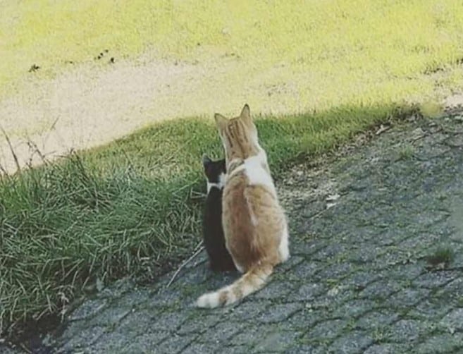 One day, a small kitten appeared in Klarieke’s backyard. She had no clue where it came from. Stavros was all around the kitten when it appeared, and it seemed that the two liked to hang around together. The former stray was protective of the kitten and their friendship truly blossomed in the months ahead.