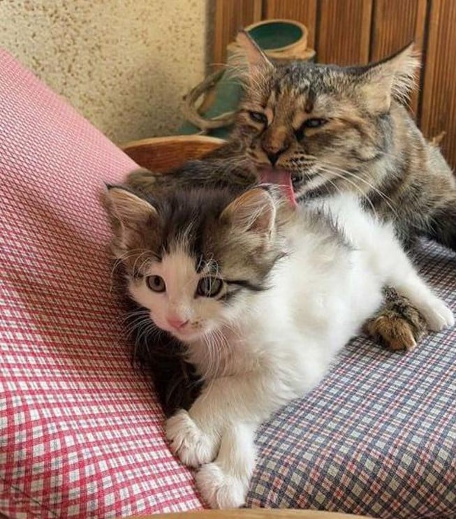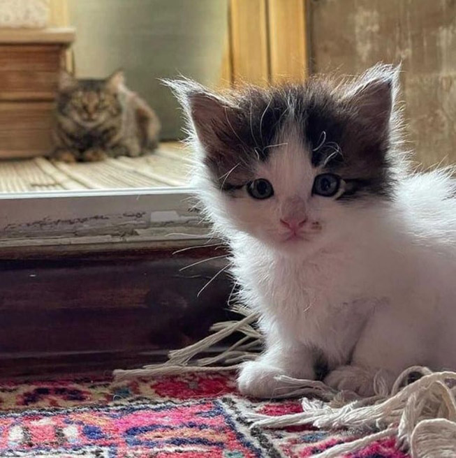 That’s how they found Bolur. This poor kitten was abandoned by her mom at one month of age. The mom returned weeks later, but was in no shape to care for her. Bolur was malnourished but a trip to the vet and some food and love helped him get back on his feet. Simin was in love with Bolur and knew she was the perfect companion to Titak.