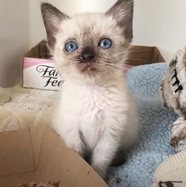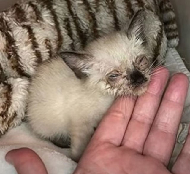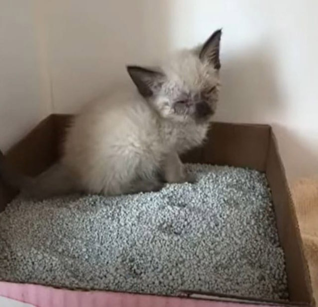 The tiny kitty you see on the pics was found malnourished, with a nasty eye infection, and small size. It was in real danger unless it was saved, and luckily for her, Nikki Martinez came to the rescue. Martinez has been a foster mom to many kittens before and she made it her mission to help Sugarbug. That’s what she named the tiny Siamese she found alone outside.