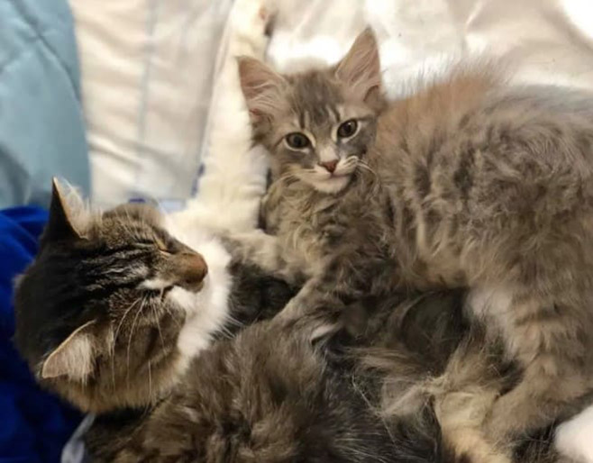 A few months later and this warrior kitty never gives up. He’s still recovering, but making strides every day. Winston has a new family now and two great buddies in Shiner the dog and Maggie and Fuzzy Pete – the cats.