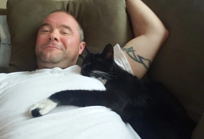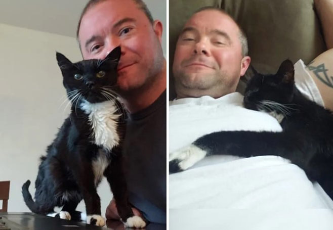 And lo and behold, the cat found a new dad indeed. Tim Adams fell in love with the cat and was fascinated by his story. He went to see Sammy and it was love at first sight. They bonded right then and there and are living a great life together in Tim’s home.