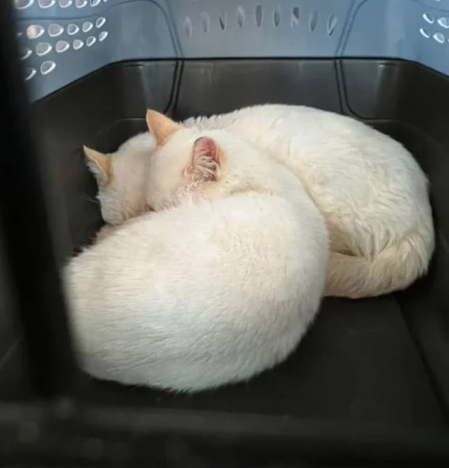 The staff decided to transport them in a single container. They were happier that way. The two kittens cleaned each other and were pretty content they were fed and in a warm place. What the staff also noticed is that they share an unbreakable bond. They never leave their side and like to sleep together.