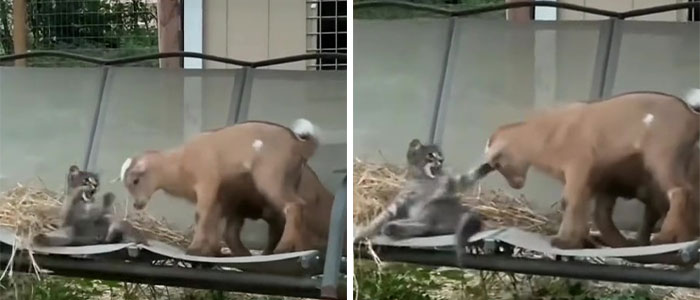 When Jan Goswick went to check up on her goats one sunny afternoon, she noticed something she hadn’t anticipated. A tiny gray ball of fluff was on one of the dog hammocks that the goats would usually lie on. Believing it was a stuffed toy, she bent down to pick it up, only for the toy to come to life and rush away. She realized that a kitten had found its way into the pen.