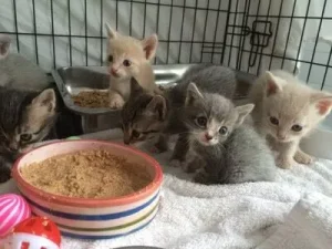 Maria, who is caring for the kittens says: “Mom is very sweet and her mix of babies are likely no more than 4 weeks old.”