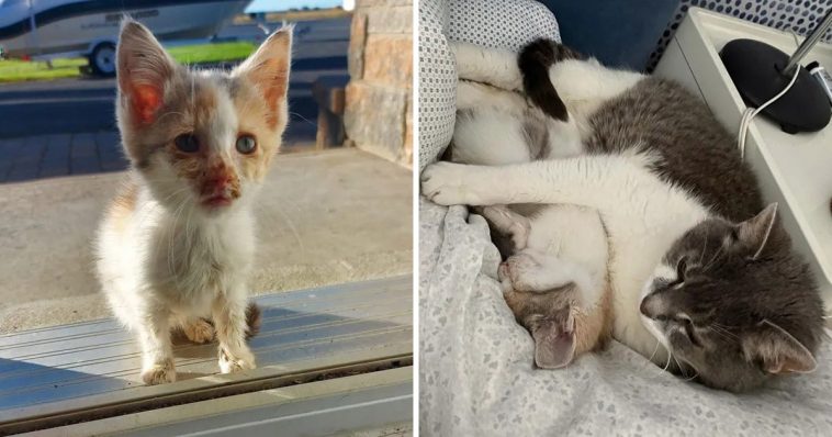 Chatons Orphelins Montreal is a rescue center from Canada that recently got an unusual guest. A tiny kitten appeared on one man’s door from out of nowhere, meowing to get the owners’ attention. The stray kitten’s momma was nowhere to be found, and it was in obvious need of help. It couldn’t have knocked to a better door. The Chatons Orphelins center was called immediately, and they came pretty quickly, taking the kitten with them.