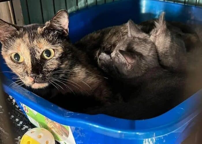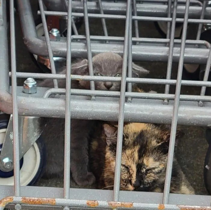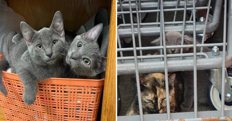 Not long ago, the Sparkle Cat Rescue was notified about a momma cat with two kittens found under a Walmart shopping cart. A team of volunteers was immediately dispatched to the market, and found the trio lurking under a row of shopping carts. They were rescued in 10 minutes after the momma and her kittens were lured in a humane trap. One of the kittens was an escape artist and gave the volunteers a run for their money. Nevertheless, they were soon in the safety confines of the animal center.
