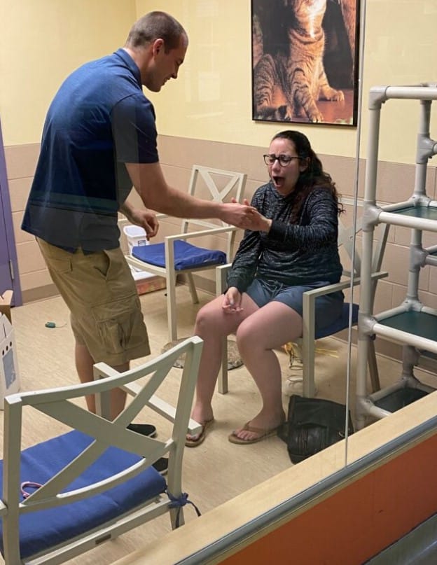 Vanessa Petrasko was the lucky lady. Her now-fiance, Mike Lovely, waited for the perfect moment to propose to her. It took a bit of time, but he just couldn’t find that moment. Until Vanessa decided to go to a shelter and adopt a kitten. It was the moment Mike was waiting for.