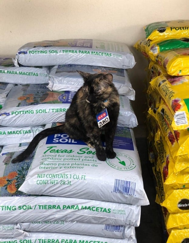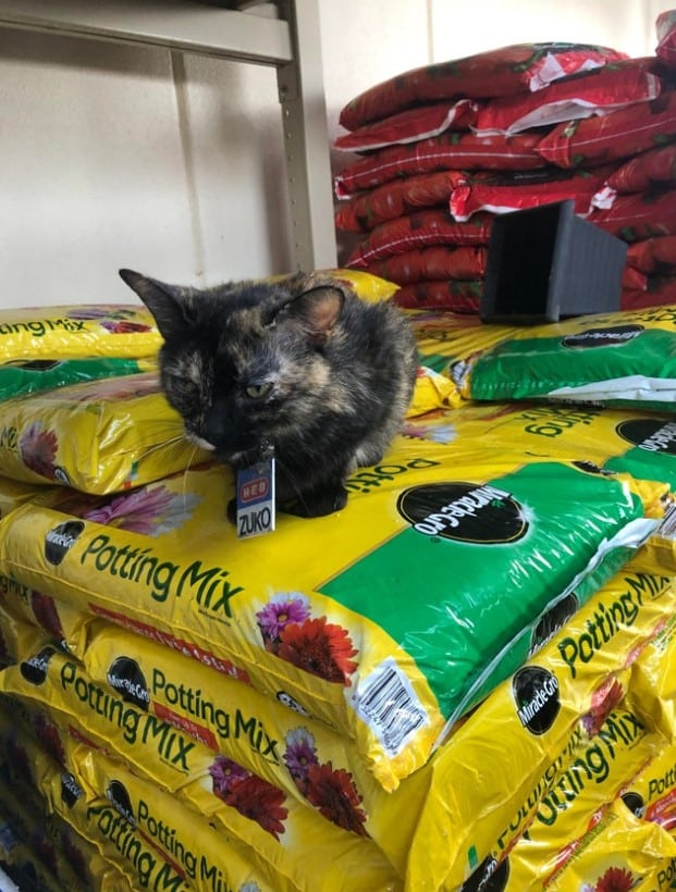 That wasn’t their first encounter. Mica had met Zuko before. Her friend saw it too, wandering around the garden aisle. Sitting on bags of dirt, Zuko didn’t mind having its pictures taken. The last time Mica saw Zuko, she decided to share the pics online, prompting cute responses such as “I’d like to speak to the meownager”. Zuko’s responsibilities were clear – keep rats off the property.
