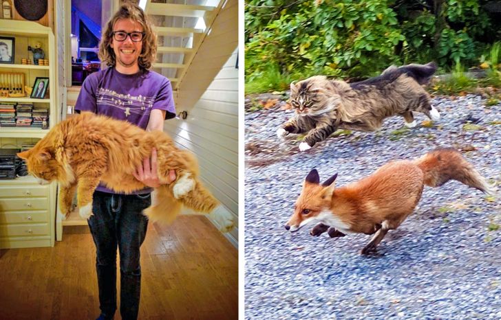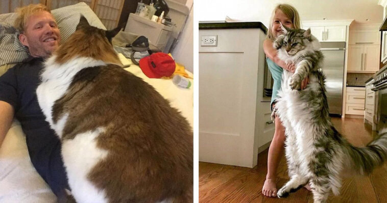Most cats weigh around 8 pounds but Samson, a Maine Coon, weighs 28 pounds and is 8 feet long! Aside from eating more food than regular cats, Samson is no different from them: he also loves playing, cuddling, and sleeping a lot.
