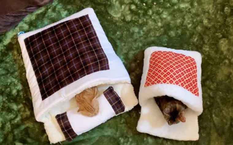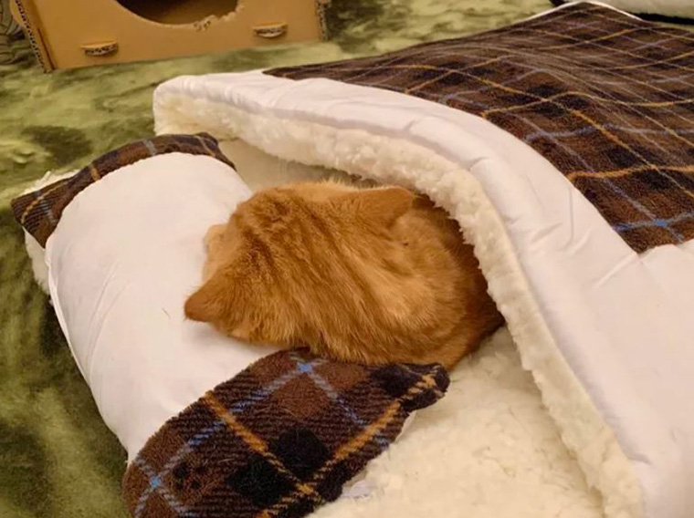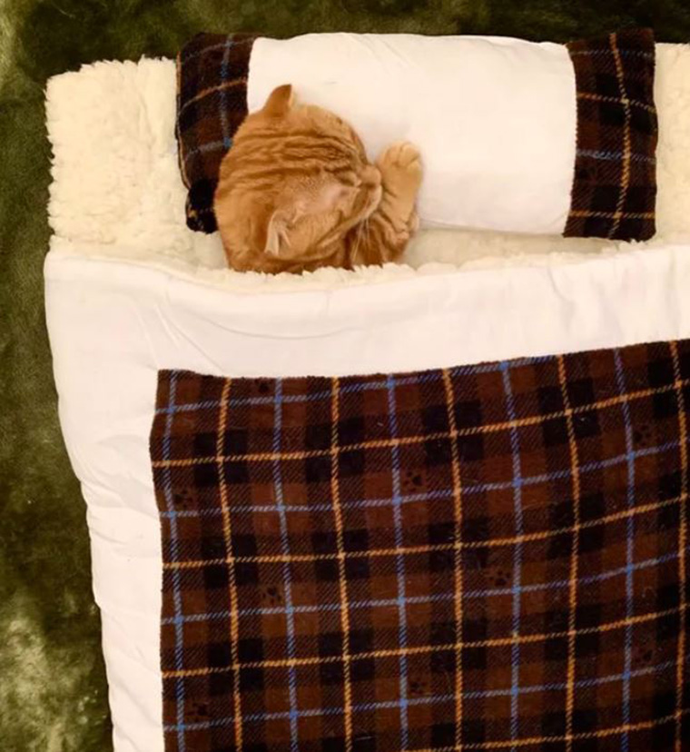 While the owner hasn’t revealed where they purchased the kitty-sized futon, you can find various kitty-sized futons on Rakuten here.