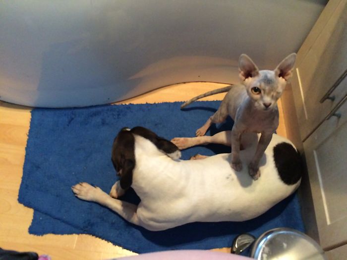 “When it got worse, the breeder gave her up and the vet took her in and did the surgery to remove the eye as it was too late to be saved.” Still, this didn’t stop the woman from seeing beauty in her: “[I] fell in love at first sight, and brought her home.” There was only one concern: how the kitty would get along with the lady’s dog…