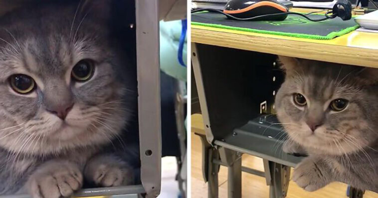 Recently, this adorable video went viral on Douyin, and it captures a fluffy feline calmly lying inside a school desk. Apparently, his owner, Ms. Wen, decided to take her one-year-old Munchkin cat along with her to the classroom after he wouldn’t let her leave home without him.