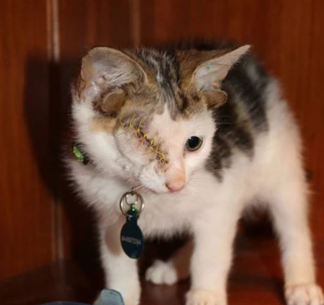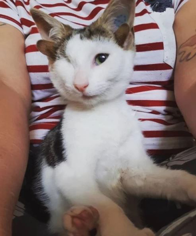 As according to Metro, Frankie, which is short for Frankenkitten, earned his name after he was found and rescued from under a house in Geelong, Australia, with a deformed and infected eye.