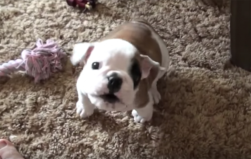 The video below is one of the most adorable videos ever, shows a tiny Bulldog called Greta wanting to set on the couch, and had a feisty argument with her dad.