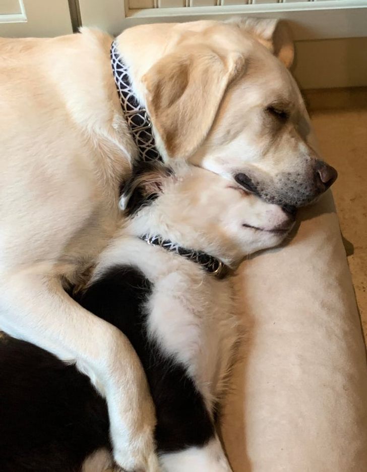 17. “My cat has adopted my new tiny puppy as his kitten.”