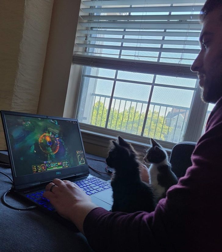 7. “On occasion, our kittens will just sit and watch my husband play League of Legends on his laptop.”