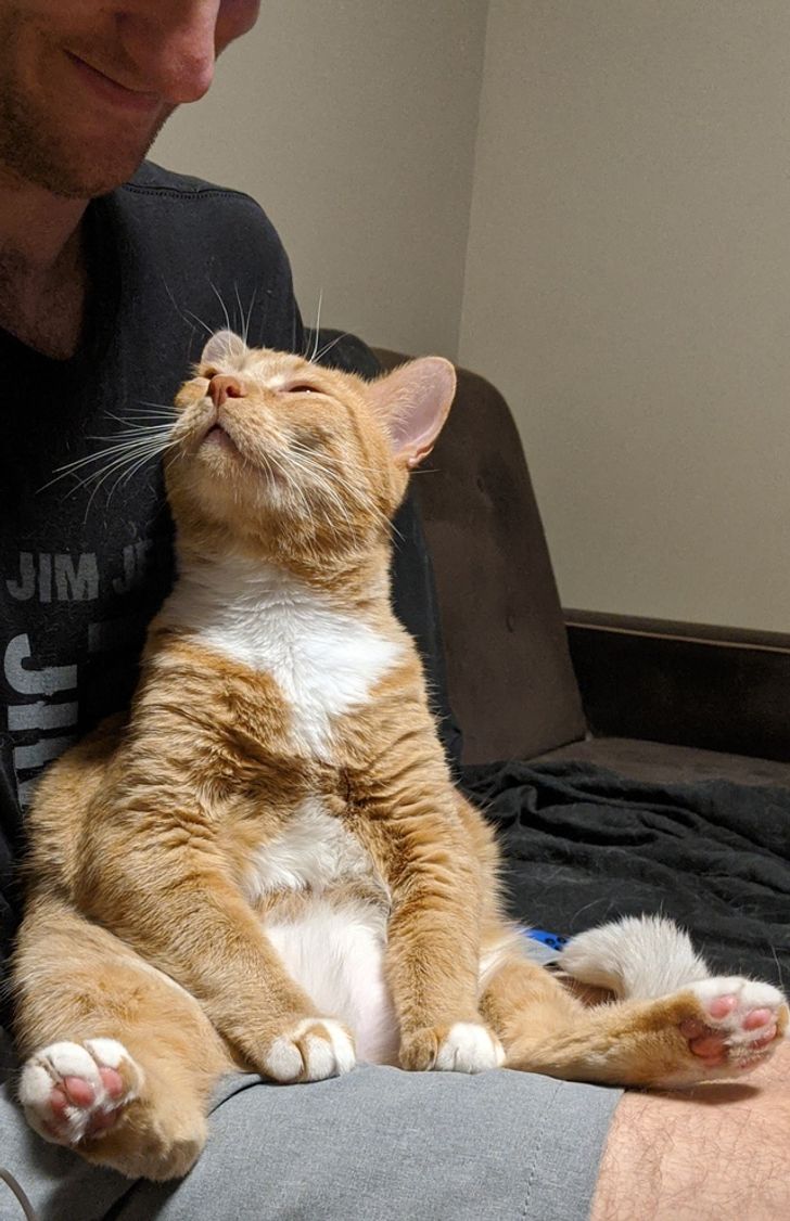 5. “We adopted Bowie last week. Can you tell he loves to cuddle?”