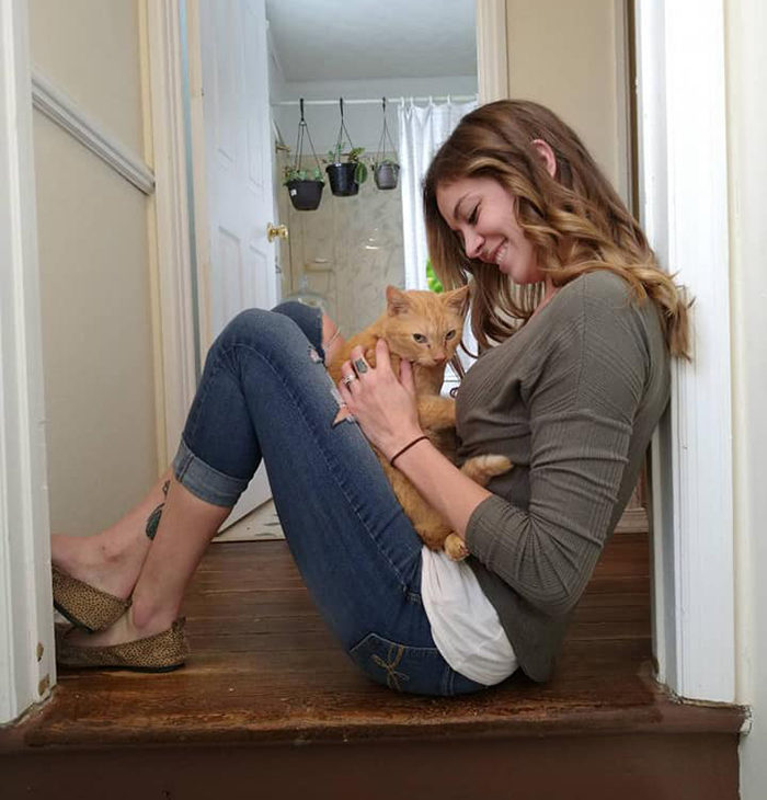 When Mindy drove to the man’s house, she was met by Cat who instantly started purring after seeing her