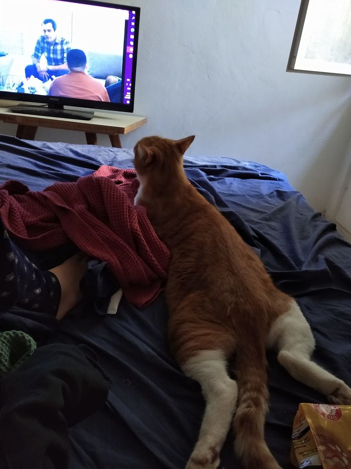 #13 My House, My Bed, Not My Cat! This Is Max, A Ginger Cat That Belongs To My Neighbor, And He Came By To Watch Some TV With Me