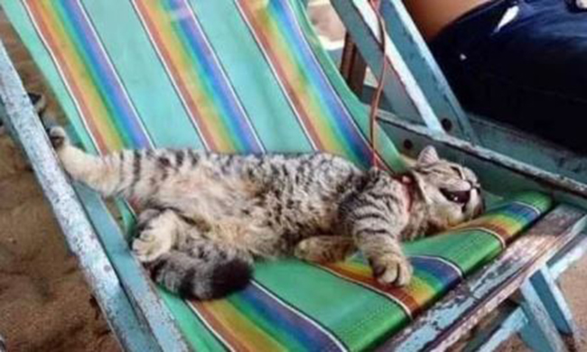 “It’s her first time going to the beach,” said Semsema Mahmoud, the cat’s owner, after posting a series of cute photos showcasing his furry feline enjoying every moment under the sun in the Facebook group, Travel Secrets Club.