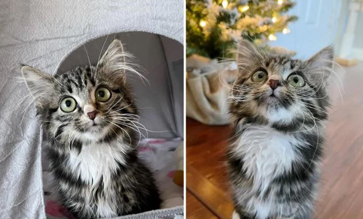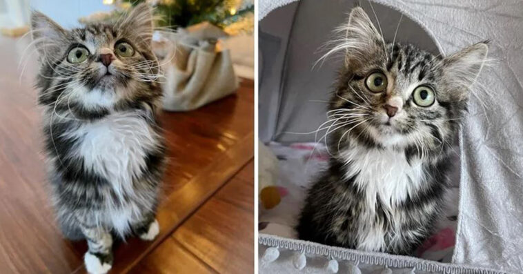 Giselle is very small, weighing only one and a half pounds, but her petite size and disability don’t hold her back. The kitten is determined to do everything that other cats do.