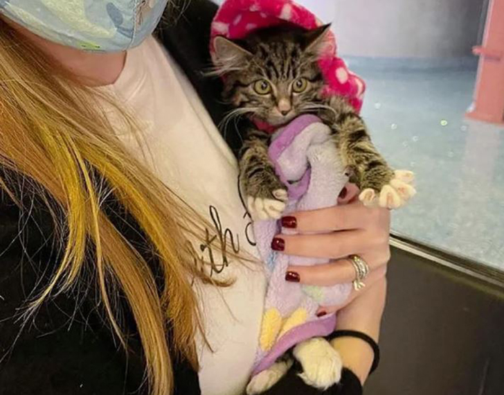 Pima Animal Care Center took her in and found a temporary foster volunteer to cater to her needs. Despite it all, the kitten named Giselle was remarkably calm the entire time, as if she knew she was in good hands.