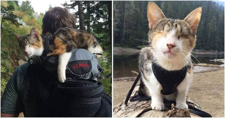 Despite being blind, she never lets it stop her from hiking with her owners and discovering the world around her. She doesn’t have good eyesight, but she has a good sense of edges and drop-offs that allows her to get close without falling in.