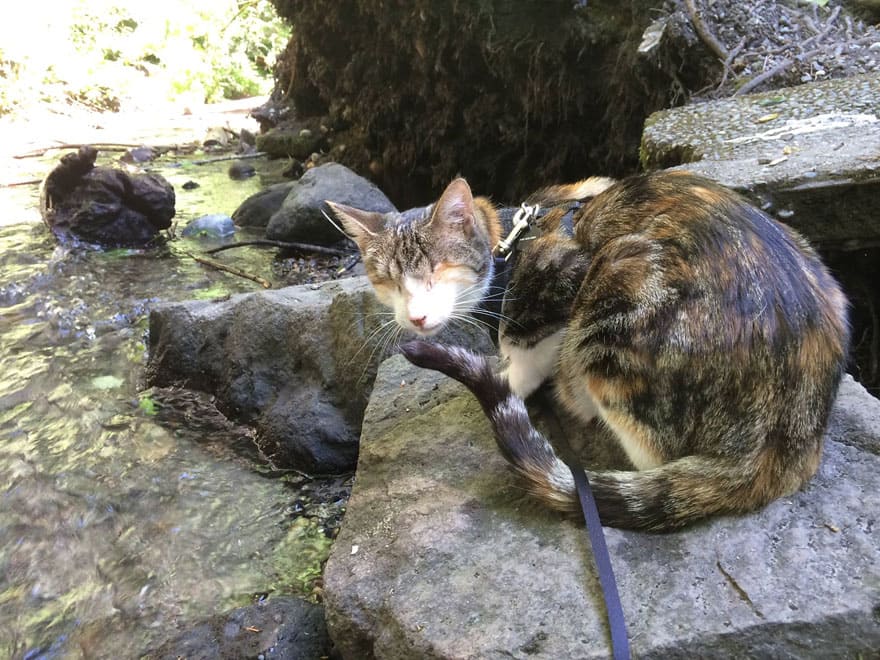 She loves to ride on her humans’ shoulders on long walks. Whenever they go hiking, they will take her on their shoulders or with a leash. She likes listening to water sounds when going on outdoor adventures.