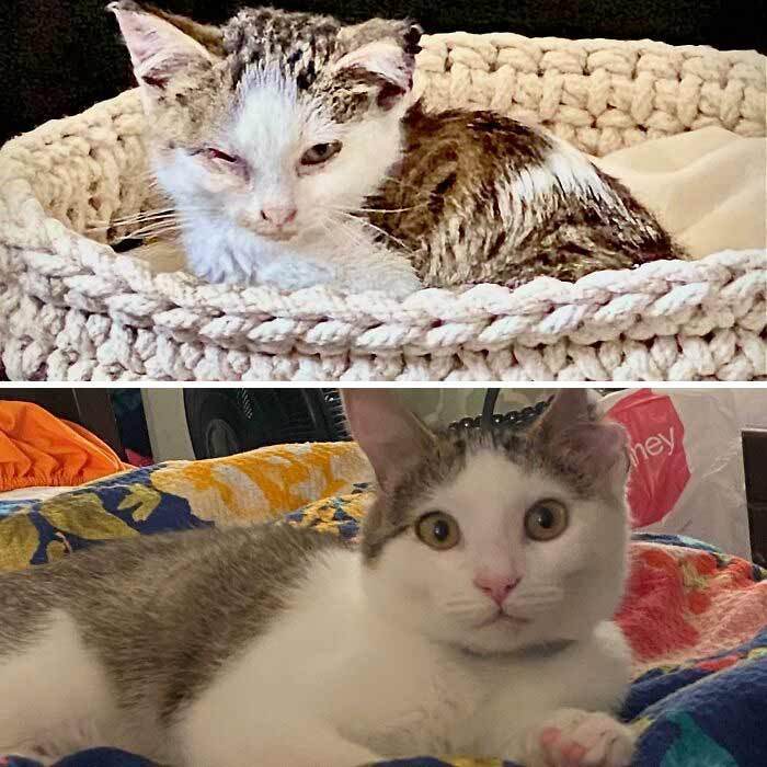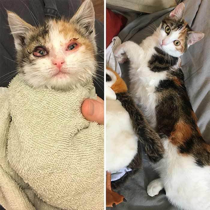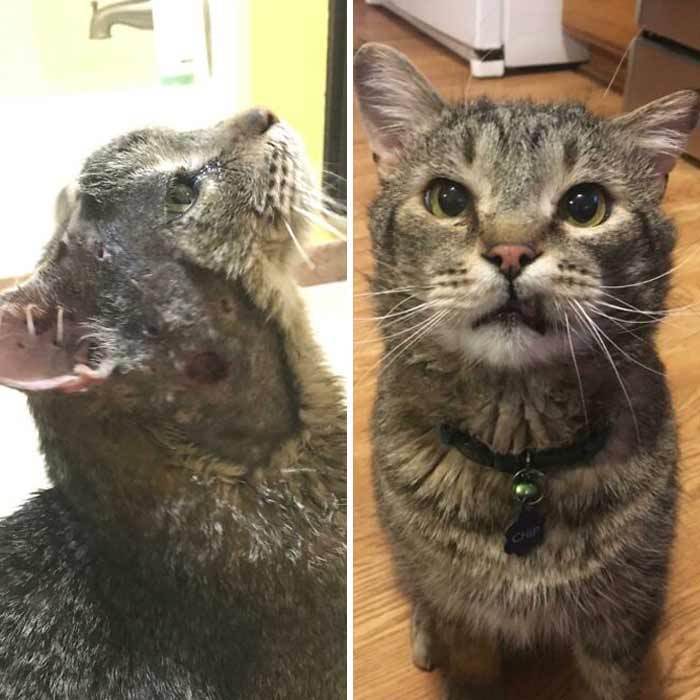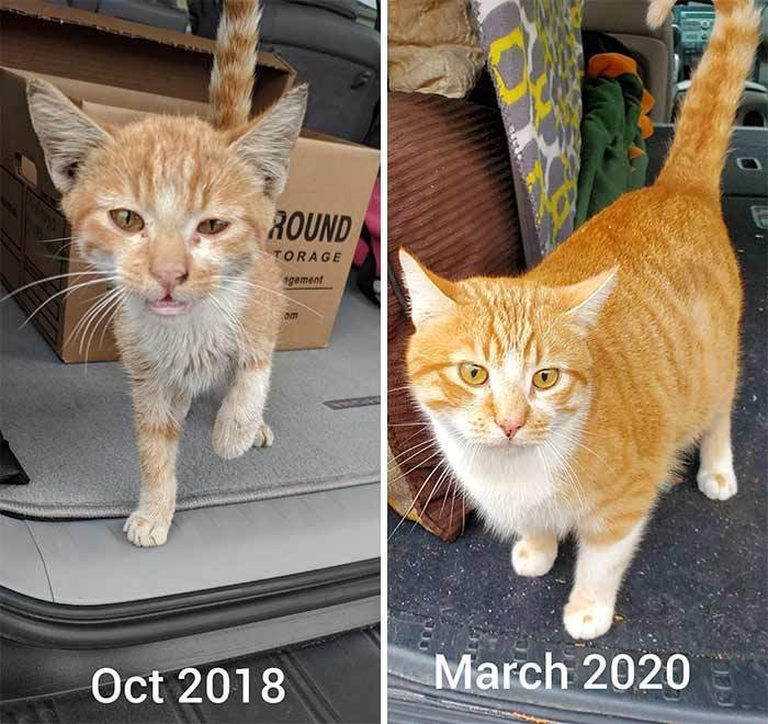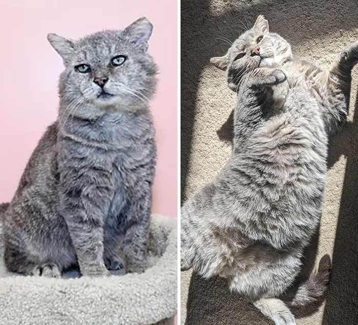 It’s heartwarming to see all the before and after pictures of cats that have spent their early lives in not very good circumstances. Thankfully there are kind people out there that are willing to take the chance on giving these kitties the chance at a better life.