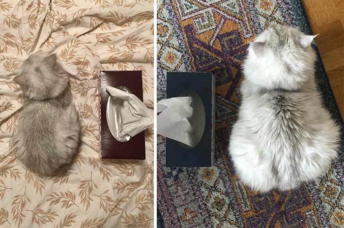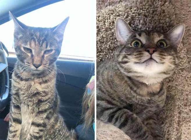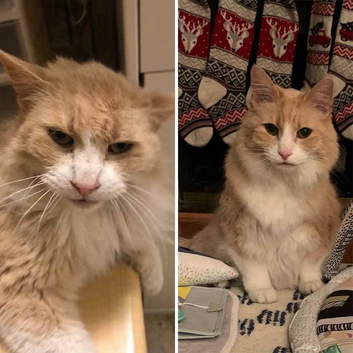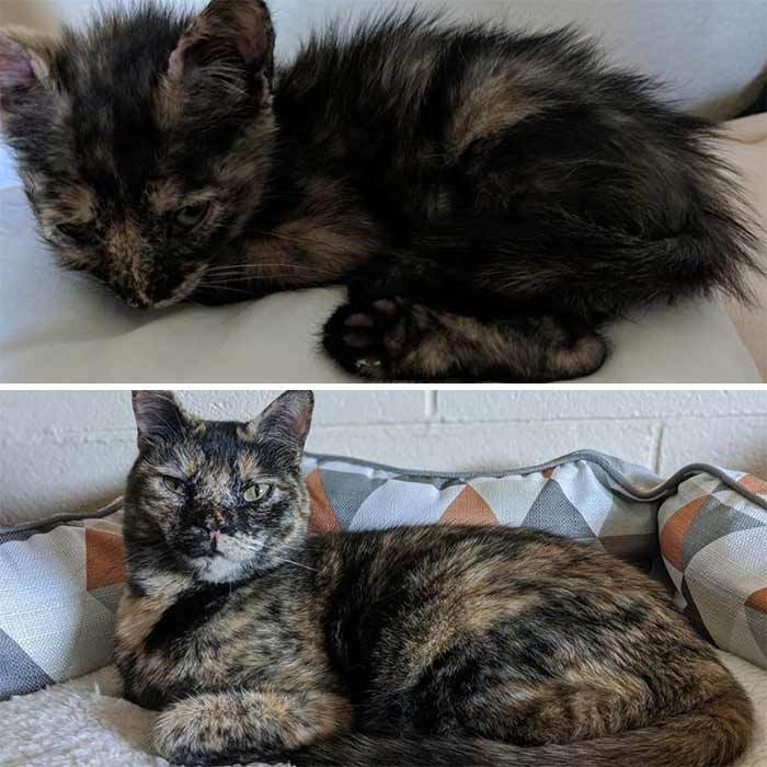10. Our kitty was already an adult in the photo on the left, the photo on the right is six months later