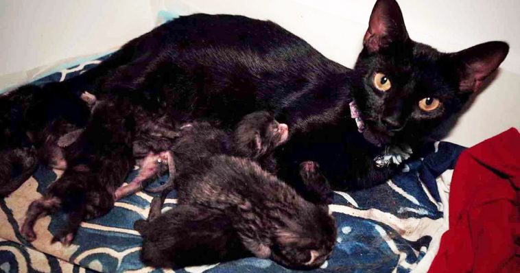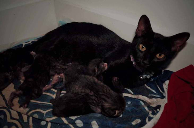 One night, Rob and Gianna returned home and found Miso standing over Suki who was meowing her heart out, next to her were four amazing newborn kittens.
