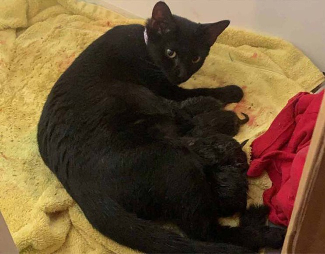 When the season changed and the weather got colder, Gianna noticed something different about the black cat. “They were both pretty small when we first met them,” she said. “Suki was very skinny but for some reason, her belly seemed a little big for her. So we were like, She’s either pregnant or something worse.”