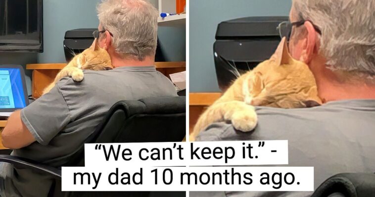6. My dad didn’t like cats, and now he claims my sister’s kitten as his own.