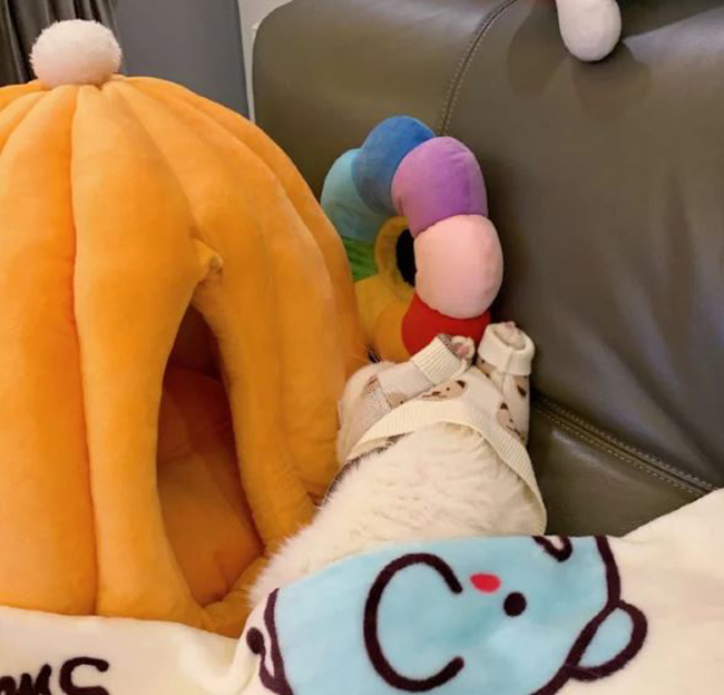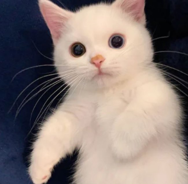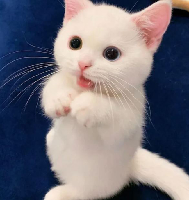 10. The munchkin kitten is named Dan Zai (egg baby). He has heterochromia.