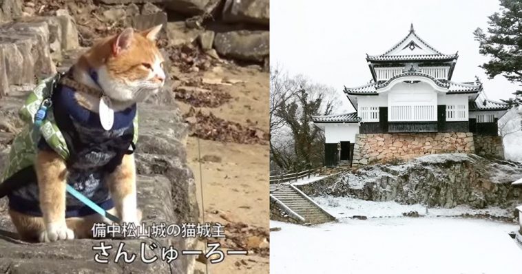 The cat’s awesome contribution to the castle didn’t go unnoticed. In December, Sanjuro was granted lordship over Bitchu Matsuyama Castle. The kitty immediately took to his new title, posing with tourists and being a very good host.