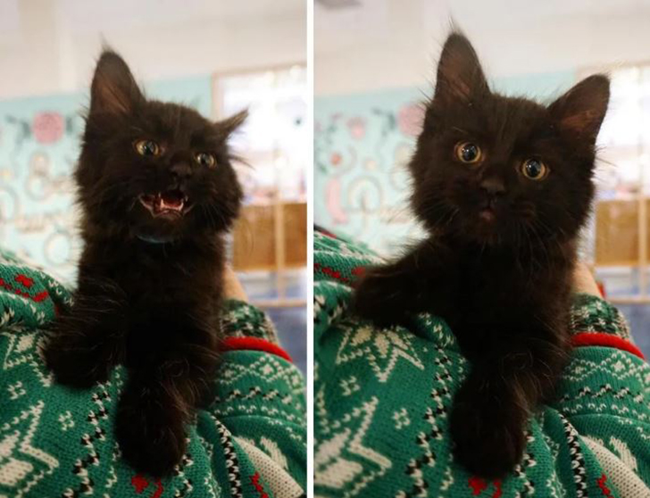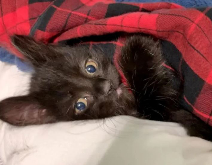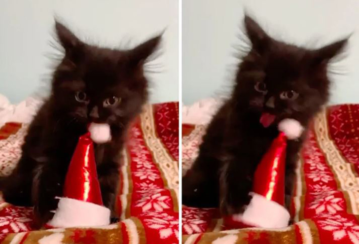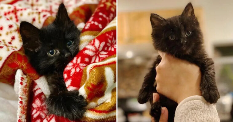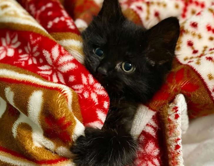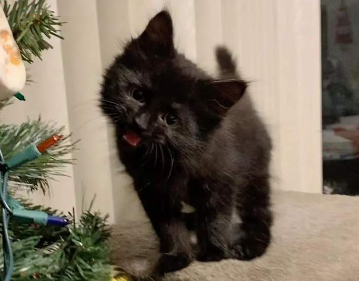 A tiny kitten with a big personality was so happy when he found the family of his dreams, just in time for the holidays.