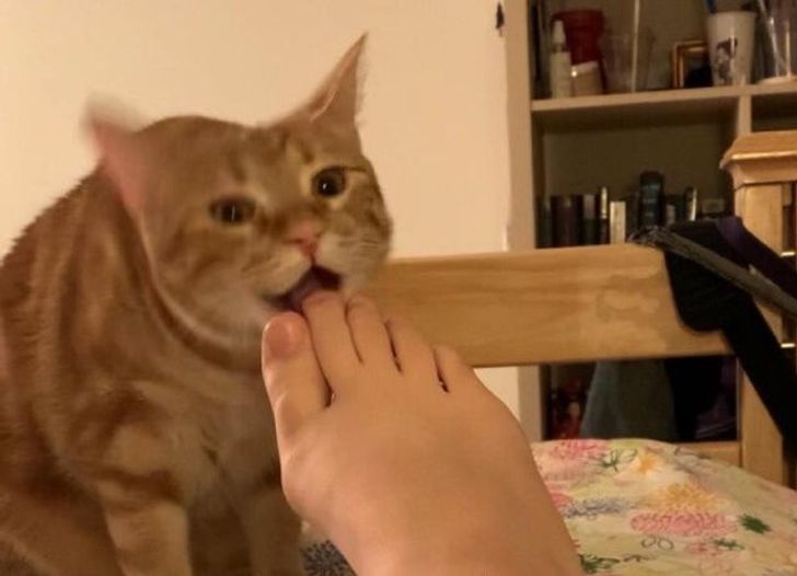 If your cat bites your feet when you’re both sleeping or resting, it’s recommended that you check your cat’s health. Make sure that your cat has no injuries or doesn’t feel sick. When cats are uncomfortable or sick, they seek your attention. They’re trying to warn you they need your help, and one of the many ways they do this is by biting your feet.