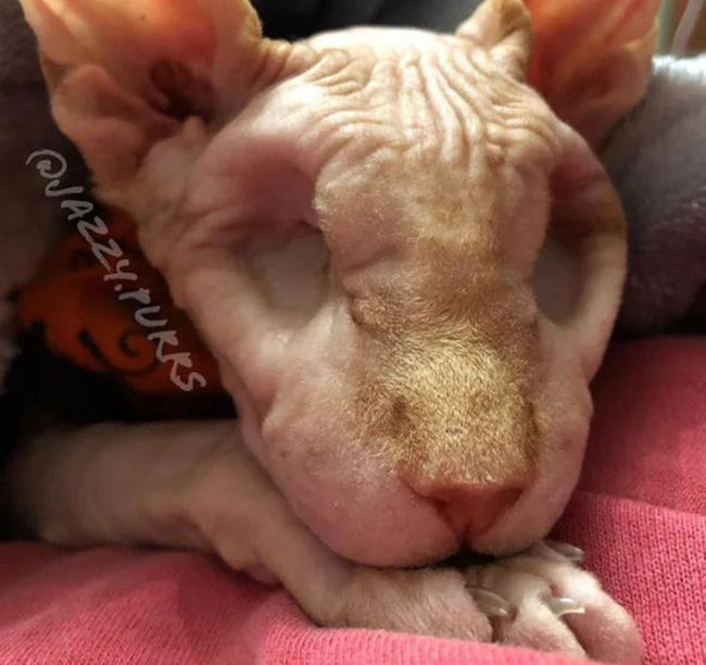 Thankfully, Jasper is no longer in pain, and the procedures resulted in his terrifyingly adorable signature look — one that has gained him thousands of internet fans!!!