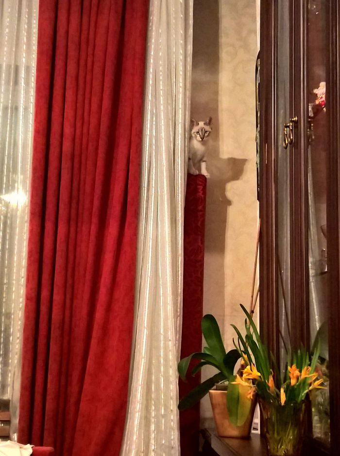 At first Chubby was afraid of every sound and was hiding under the sofa all the time