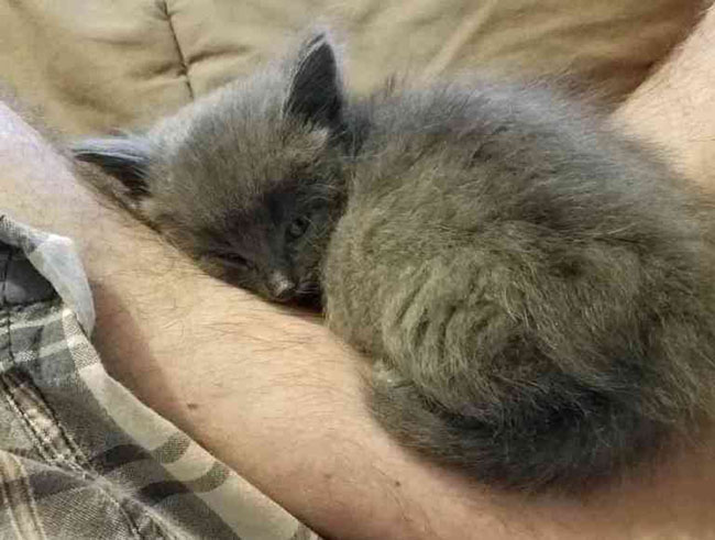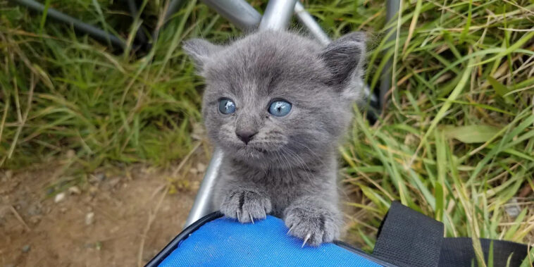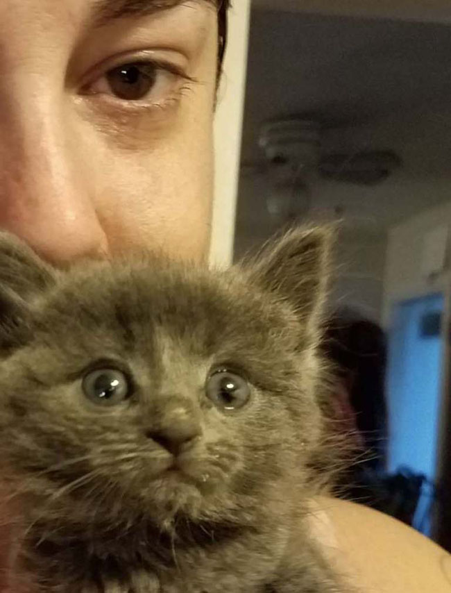 “She’s doing great now, eating like a champ, already doing well with cat litter, and we’ve de-flea’d her as best we can because she’s so young and tiny there aren’t any anti flea meds we can safely use.”