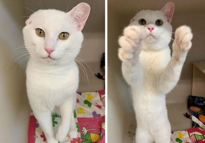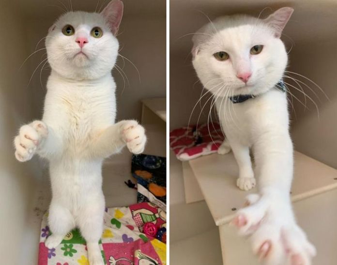 The little one-eared wonder cat didn’t just sit back and relax. He was on a mission to find the family of his dreams. As soon as he woke up, Hopper was on his hind paws, trying to get attention from anyone that walked by.