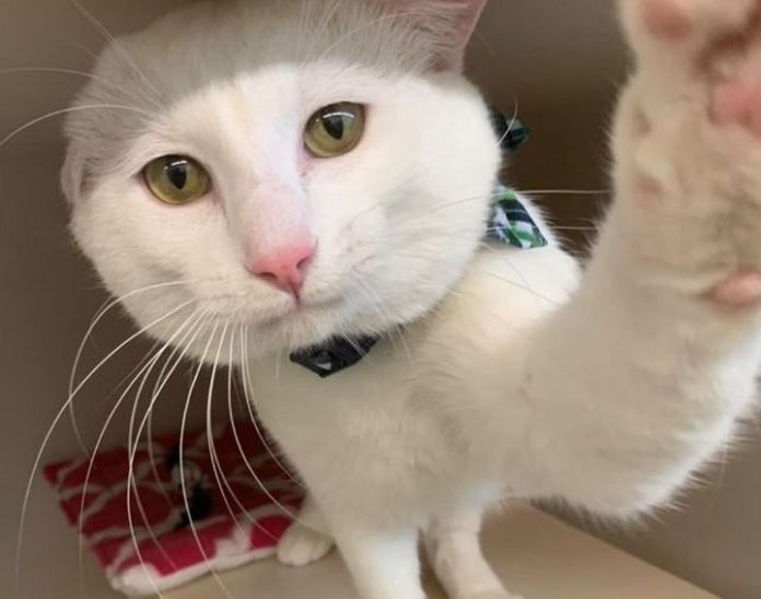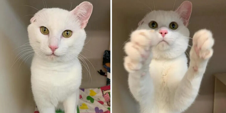 A sweet kitten with one ear waved at everyone he came across at the shelter and hoped they noticed him.